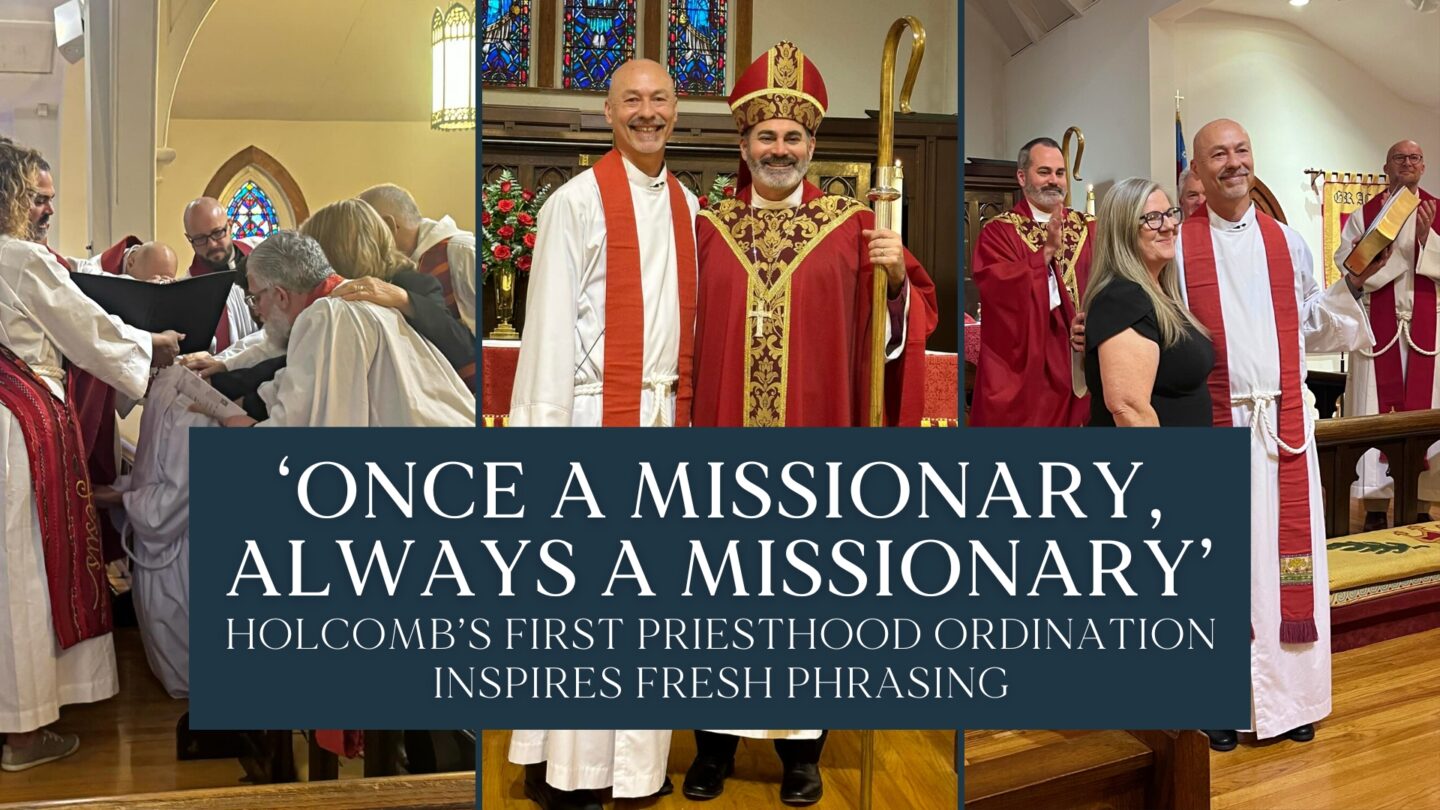 The Rt. Rev. Dr. Justin S. Holcomb, bishop of the Diocese of Central Florida, used a familiar phrase when he presided over his first ordination to the priesthood on Feb. 10 at Grace, Ocala: “Once a deacon, always a deacon.” This phrase is commonly used to remind ordinands that a new ordination does not cancel a previous one; the call to serve the church and the world remains. But during the ordination to the priesthood of the Rev. Brian Stankich, whom Holcomb ordained to the diaconate in July, Holcomb gave the phrase a fresh twist: “Once a missionary, always a missionary.”