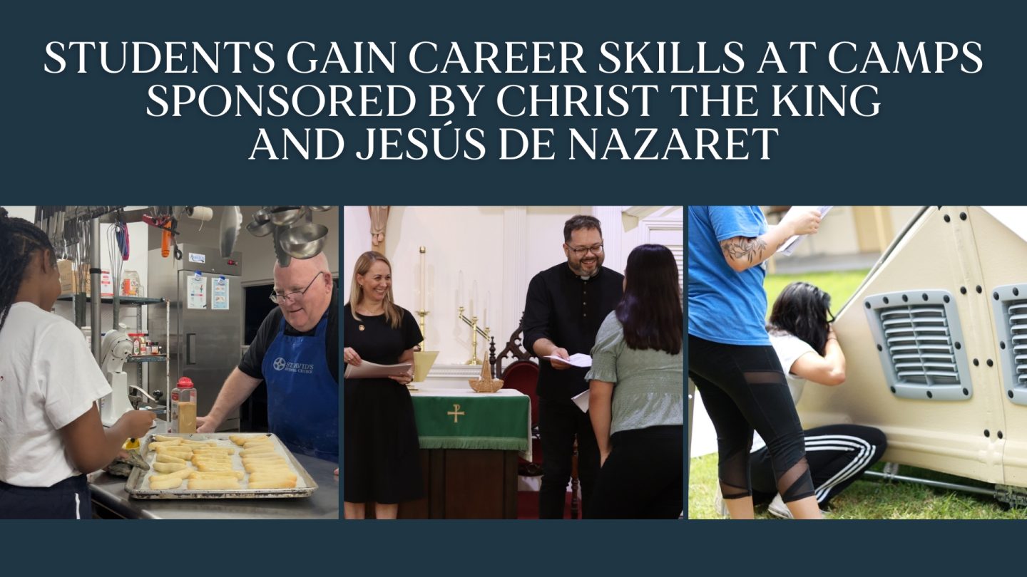 Thirty-six high school students participated in three career-focused summer camps across Central Florida, organized by Christ the King and Jesús de Nazaret churches in partnership with the Renacer Foundation and funded by a $150,000 grant from CareerSource Central Florida. The camps offered hands-on training in business management, hospitality, culinary arts and green jobs, marking the first time these churches extended their long-standing vocational outreach to youth.