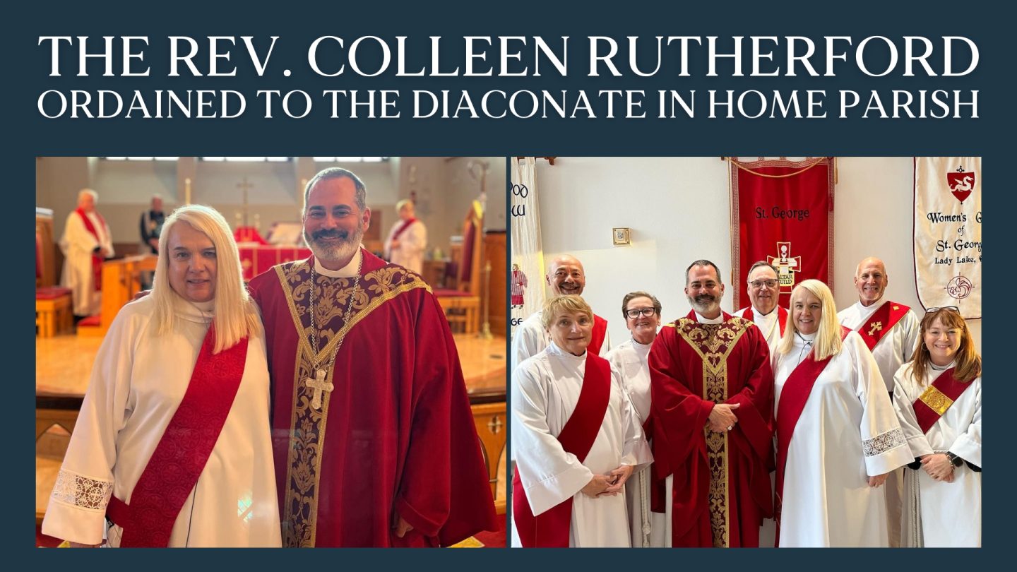 At a service attended by the parishioners she will serve and others with whom she has close relationships, the Rev. Colleen Rutherford was ordained to the vocational diaconate on Aug. 9 at her home parish, St. George, The Villages. The Rt. Rev. Dr. Justin S. Holcomb delivered the charge, and the Rev. Dr. James Taylor, rector, gave the sermon.