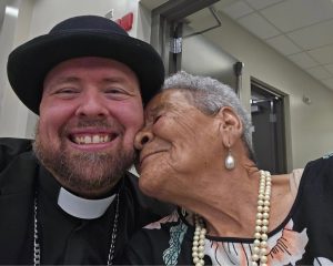 Myers also spoke about what he called Butler’s “radical hospitality,” referring to celebrations she helped plan, including her own birthday parties. “What I loved about those parties [was that they were] a parable of the kingdom of God. … it’s her birthday party, it’s her celebration, and you would think that everybody would bring her gifts and serve the food to her, but no … Mable had that food orchestrated, and people would get … scarves and everything else – out of her abundance. See, Mable understood the goodness of God and the hospitality of the God of giving. She understood that the blessings that God gave her were not just for her, but they flowed through her. She understood that the kingdom of God was for everyone.”