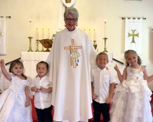 Encouraging baptisms is a regular part of her service as a priest, Mueller explained. “I make it part of my ministry to know the people in my parish and to talk with those who haven’t been baptized about what baptism means,” she said. “One of the advantages of a smaller church is that you get to know the people and know their stories.”