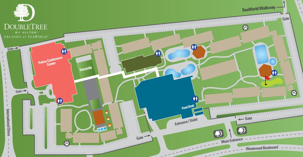 Click the DoubleTree site map below to view and download a PDF you can reference along with the 2025 Clergy Conference agenda to find parking, the front desk, veranda, and our meeting rooms in the Palms Conference Center.